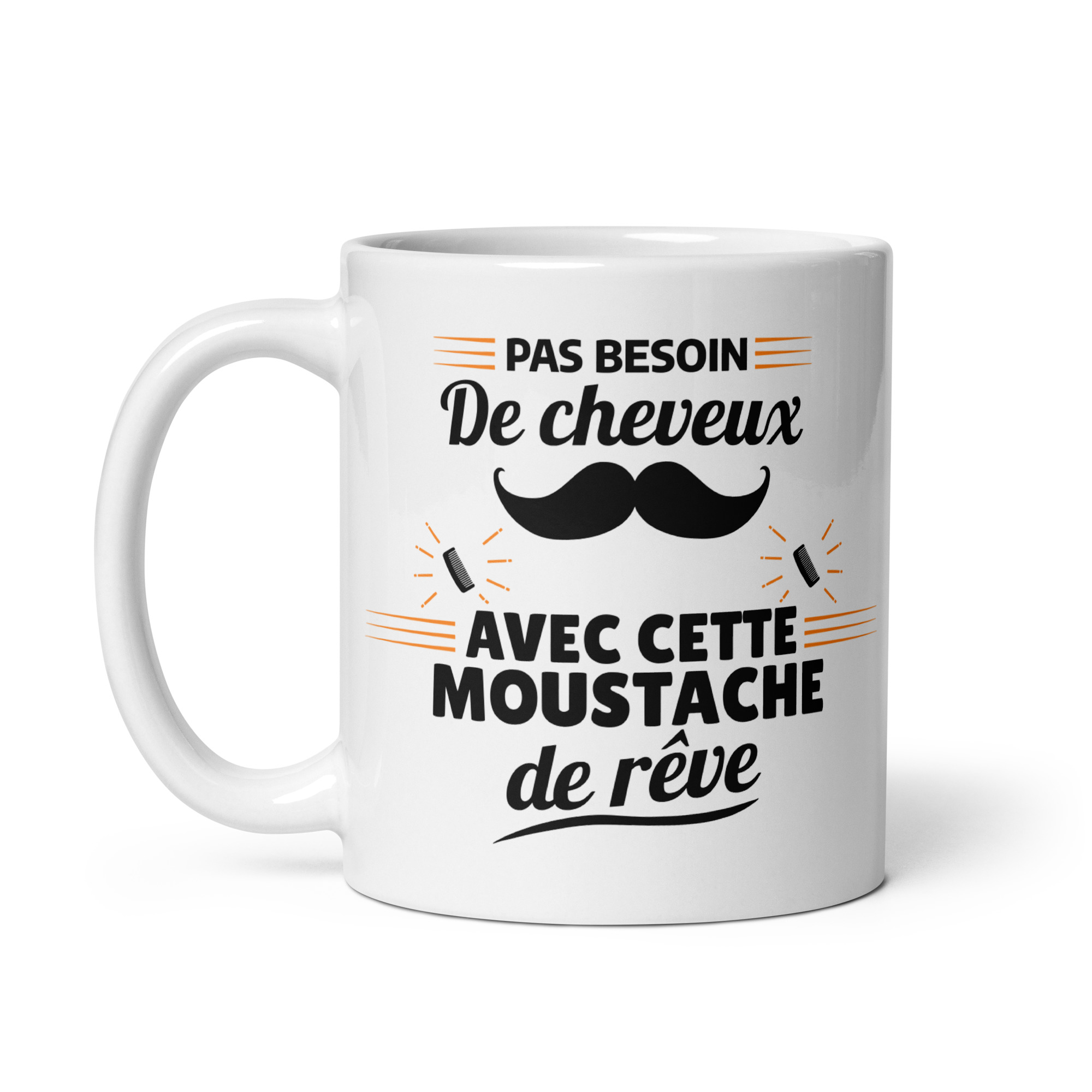 Mug Blanc Brillant Pas besoin de cheveux avec cette moustache de rêve